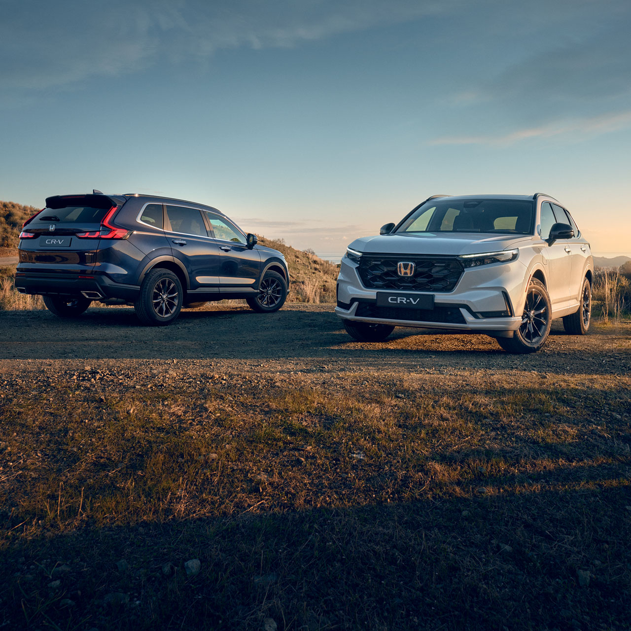 Modèles présentés : CR-V e:HEV 4WD Advance en coloris Bleu Canyon et CR-V e:PHEV 2WD Advance Tech en coloris Diamant Brillant - Consommation et émissions en cycle mixte WLTP selon la version : de 0,8 à 6,7 l/100 km et de 59 g à 152 g de CO2/km. Chiffres issus de tests réalisés par un laboratoire agréé par l’UE ; ils sont fournis à titre de comparaison et peuvent ne pas refléter l’expérience de conduite en conditions réelles.