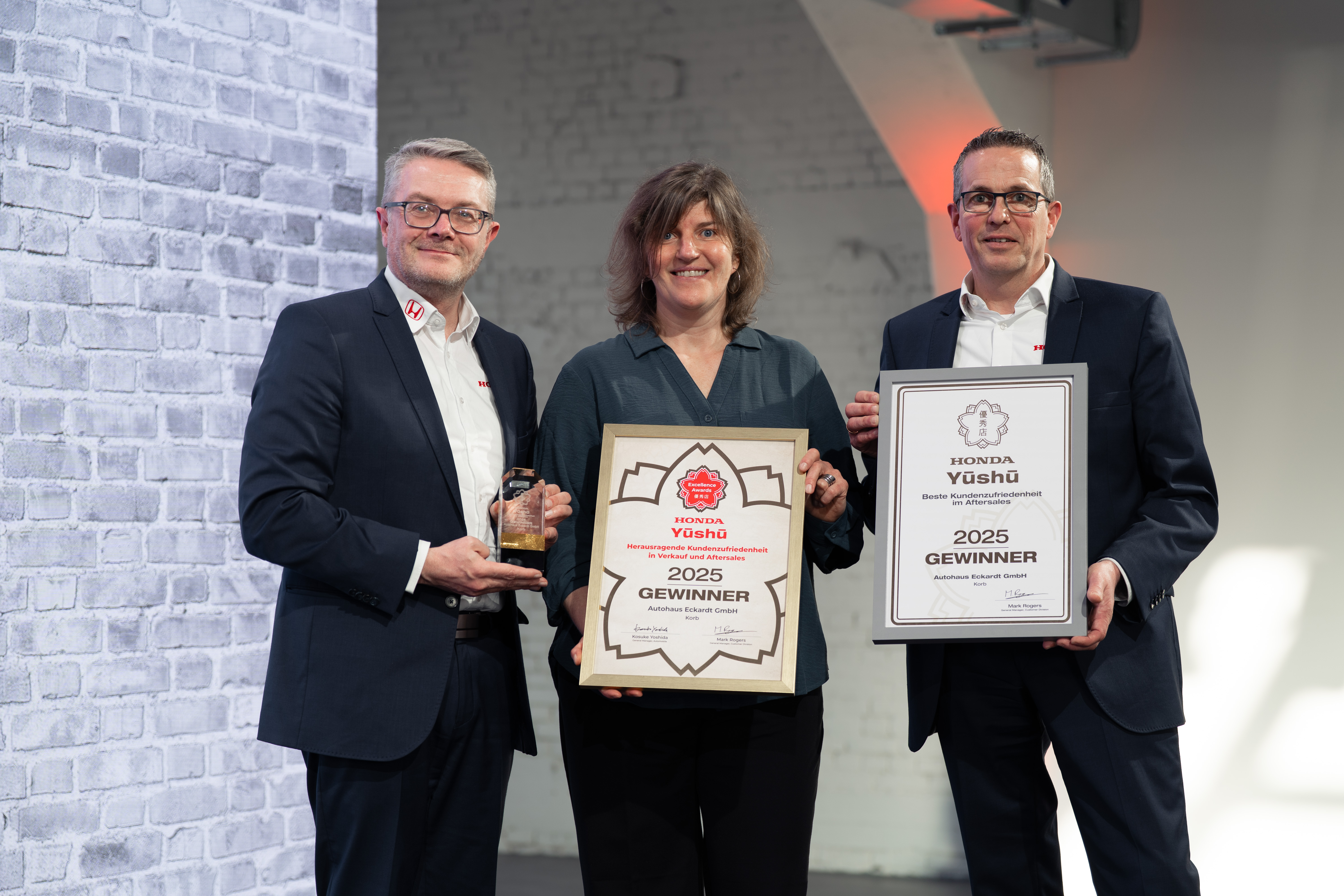 Yūshū incarne l’excellence de Honda à travers toute l’Europe. Il s’agit d’un programme de récompense prestigieux visant à célébrer les concessionnaires qui se distinguent par un niveau exceptionnel de satisfaction client.